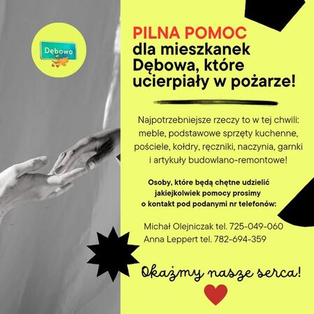 Poszkodowane zostały dwie mieszkanki, które w pożarze straciły część dobytku. Dlatego też, sołtys wraz z radą sołecką zorganizował zbiórkę najpotrzebniejszych rzeczy. Szczegóły na plakacie.