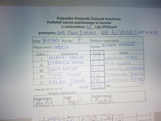 Druga drużyna (juniorska) rozegrała spotkanie w Mroczy, z wice-liderem rozgrywek - drużyną UKS Rotmistrz I Grudziądz. Mecz ten zakończył się remisem 2.5:2.5. Punkty dla drużyny z Mroczy zdobyli: Mirosław Kozielski, Cezary Tajer oraz Jakub Gręda.