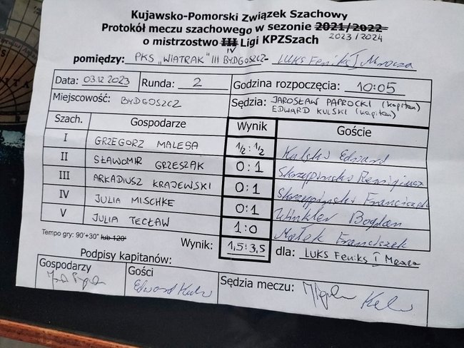 Kolejne spotkania obu drużyn odbędą się 17 grudnia. Drużyna seniorska zmierzy się z drużyną UKS Szachowa Dwójka Szubin natomiast drużyna juniorska zagra z drużyną AZS UMK Toruń.