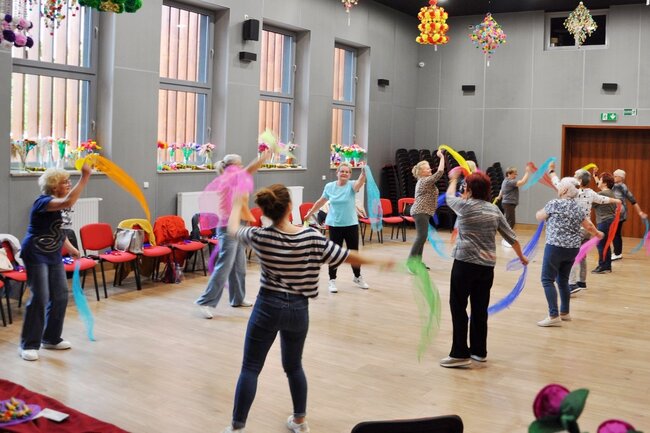 Kolorowe chustki wirowały w powietrzu, a nogi same rwały się do tańca. Kto był – ten wie, że to idealny sposób, by spalić wszystkie kalorie z majówkowego grilla! Zajęcia prowadzi dyrektor Szubińskiego Domu Kultury – Joanna Kalka. Do zobaczenia na kolejnych spotkaniach!