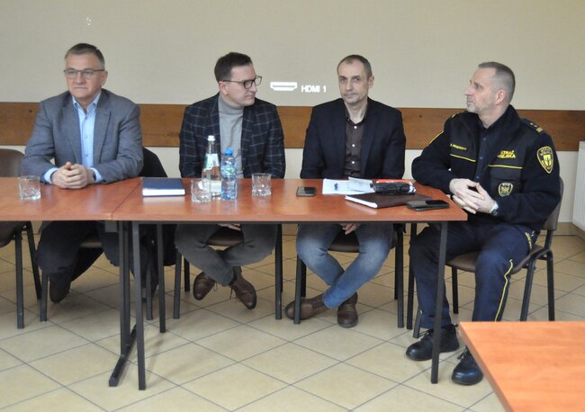 Z kolei Krystian Płatek przedstawił działania związane z ochroną ludności w gminie, zarówno te zrealizowane w 2025 roku, jak i obecnie prowadzone. Omówił inwestycje związane z budową i modernizacją remiz strażackich, plany tworzenia miejsc doraźnego schronienia na wypadek sytuacji kryzysowych oraz zasady postępowania w takich sytuacjach.