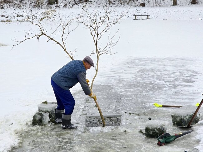 Z uwagi na konieczność wykonania #przerębli na stawie, które umożliwiają prawidłową wentylację zbiornika przy grubej pokrywie lodu, prosimy z powodów bezpieczeństwa nie zbliżać się do przerębli.