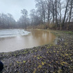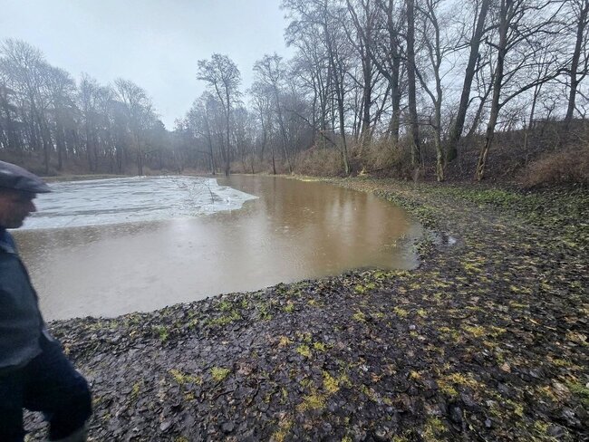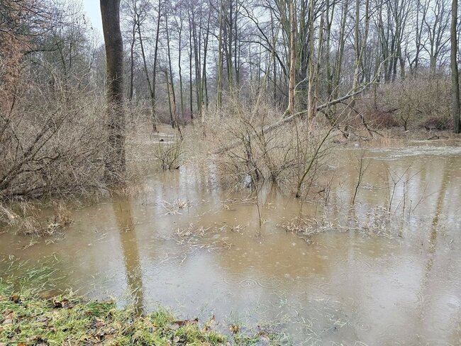 Ogromny zrzut wody w krótkim czasie zalał staw oraz sporą część parku. W niektórych miejscach woda zrównała się z poziomem grobli.