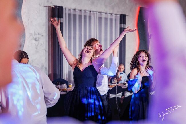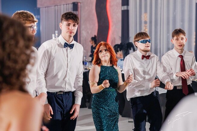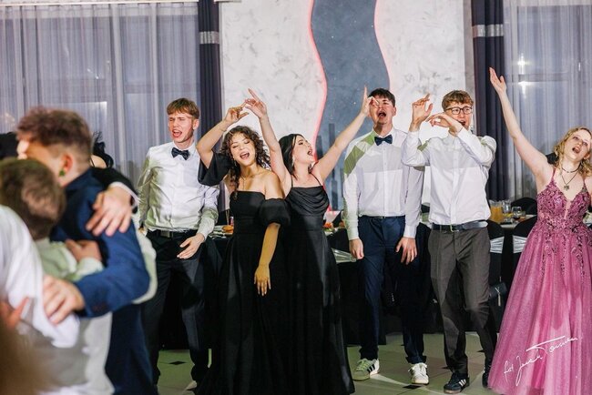 Wieczór od pierwszych chwil zachwycał atmosferą radości, wzruszeń i wspólnego świętowania. Uczniowie, we współpracy z Rodzicami, perfekcyjnie przygotowali całe wydarzenie – od oprawy organizacyjnej po dbałość o każdy szczegół. Eleganckie stroje, piękna dekoracja sali oraz doskonała muzyka sprawiły, że parkiet przez wiele godzin tętnił życiem.