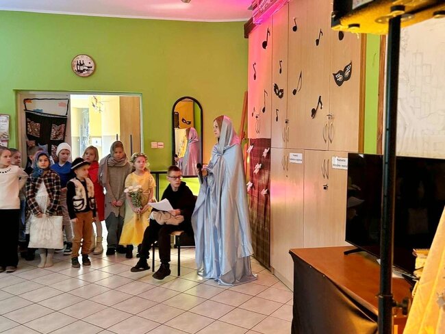 Wyjazd był nie tylko okazją do zaprezentowania talentów aktorskich i muzycznych, ale również ważną lekcją wrażliwości, empatii oraz dzielenia się radością z innymi. Serdecznie dziękujemy uczniom za piękny występ oraz nauczycielkom – pani K. Brzykcy i pani A. Chojnackiej – za wspaniałe przygotowanie przedstawienia.