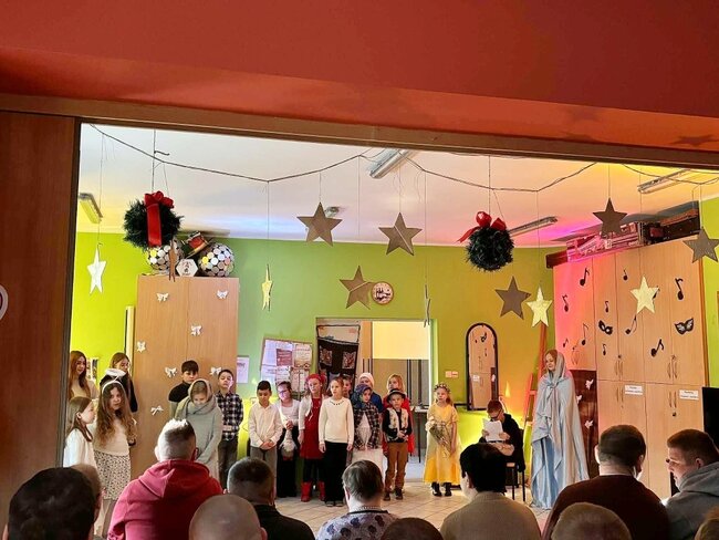 Młodzi artyści z dużym zaangażowaniem i radością przedstawili historię Bożego Narodzenia, wprowadzając publiczność w ciepły, świąteczny nastrój. Występ spotkał się z niezwykle serdecznym przyjęciem ze strony uczestników oraz pracowników WTZ, którzy nagrodzili uczniów gromkimi brawami.