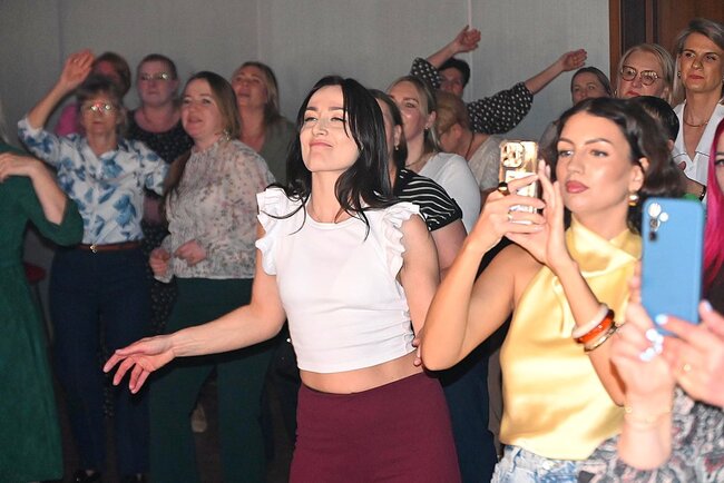 Parkiet szybko wypełnił się tańczącymi uczestniczkami wydarzenia. Panie chętnie korzystały z okazji do wspólnej zabawy, a w sali panowała radosna i swobodna atmosfera. Taneczna część spotkania była doskonałą okazją do integracji oraz zakończenia wieczoru w lekkim, rozrywkowym stylu.