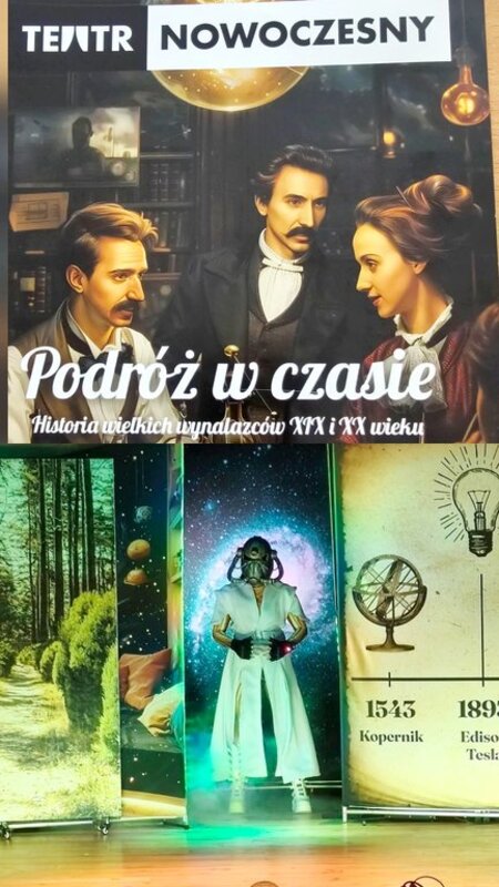 Wraz z głównym bohaterem uczniowie „spotkali” wybitne postacie historyczne, takie jak Nicola Tesla, Maria Curie-Skłodowska, Mikołaj Kopernik czy Albert Einstein. Spektakl nie tylko przybliżył nam sylwetki wielkich wynalazców, ale także pokazał, że warto wierzyć we własne możliwości i realizować pasje.