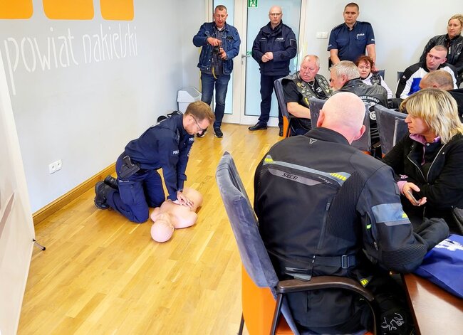 Po zakończeniu imprezy motocykliści wysłuchali prelekcji, przygotowanej przez policjantów, na temat bezpieczeństwa w ruchu drogowym oraz poznali zasady udzielania pomocy w wypadku nagłego zatrzymania krążenia.