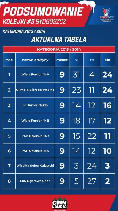 Junior B (2016) – drużyna w całości z rocznika 2016 notuje swój najlepszy występ w Lidze! Komplet zwycięstw, świetny styl gry i wygrana z zespołem, z którym wcześniej nam się to nie udało. Brawo za walkę i determinację!
