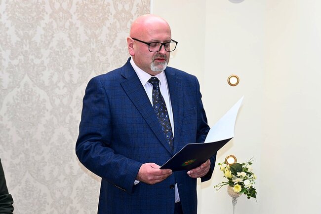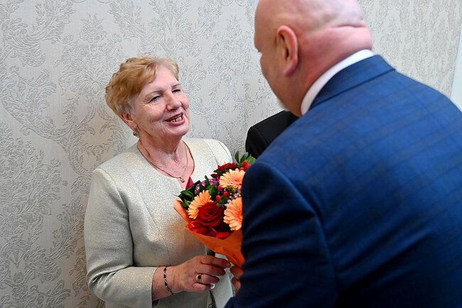Uroczystość rozpoczęła kierownik Urzędu Stanu Cywilnego Monika Niedbała, która serdecznie powitała Jubilatów oraz zaproszonych gości, podkreślając doniosłość tego niezwykłego święta. W swoim wystąpieniu zwróciła uwagę na wartość małżeństwa opartego na wzajemnym szacunku, zaufaniu i odpowiedzialności.
