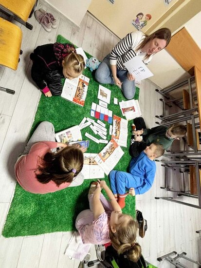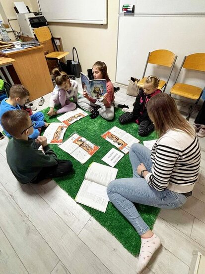 Nauka w klasie 1. nie musi odbywać się tylko #w ławkach! Podczas edukacji polonistycznej uczniowie z NSP Stowarzyszenia "KMK KOS" w Kosowie uczyli się na dywanie.