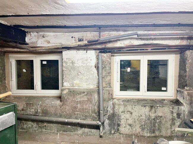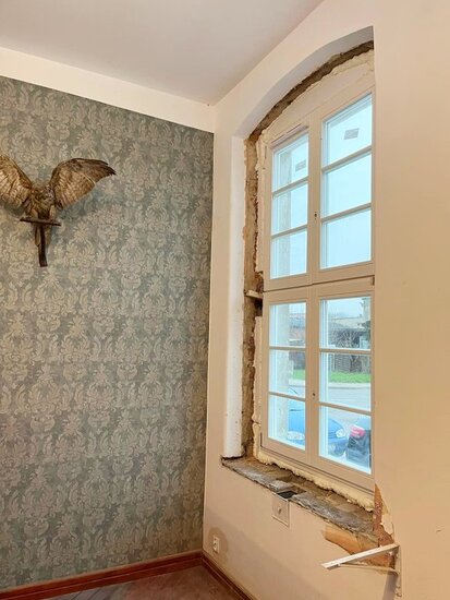 Efekt jest bardzo ładny zniknęły niepasujące plastikowe okna i stare wysłużone drzwi. Ta sytuacja przyśpieszyła zaplanowany remont pozostałych pomieszczeń w siedzibie Towarzystwa Historycznego. Jesteśmy w trakcie oczyszczania pozostałych elementów boazerii w holu zejścia na perony, czeka nas przebudowa instalacji elektrycznej w tym pomieszczeniu i w części byłej restauracji kolejowej, wzmocnienie ścian i malowanie.
