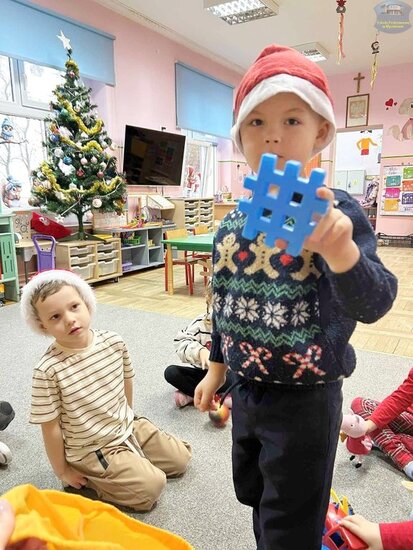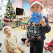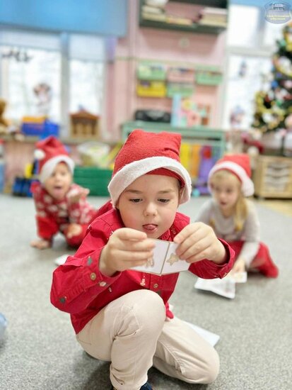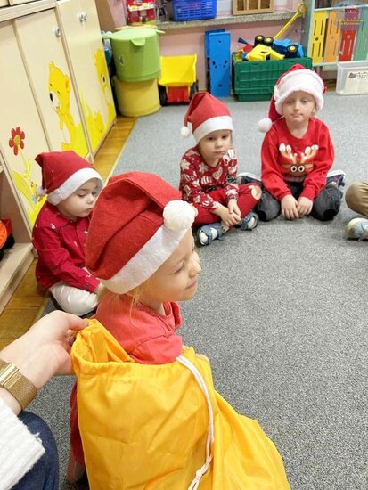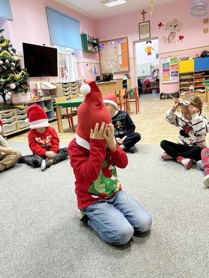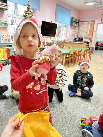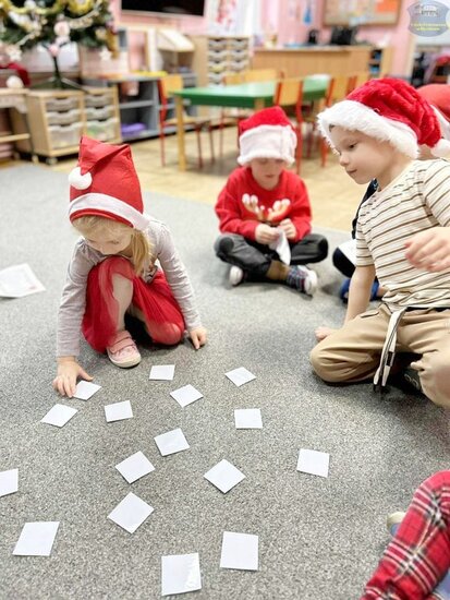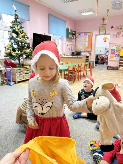 Najpierw „Motylki” próbowały odgadnąć, co kryje się w mikołajkowym worku, wykorzystując jedynie dotyk. Następnie układały prezenty od najmniejszego do największego i odwrotnie, ćwicząc spostrzegawczość oraz logiczne myślenie. Nie zabrakło także emocjonującej gry memory i wspólnych zabaw w kole, które dostarczyły mnóstwo śmiechu.