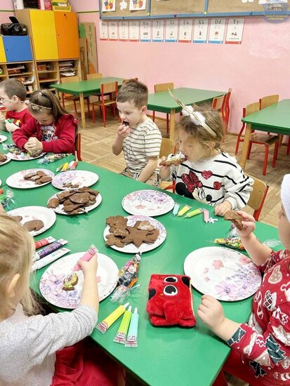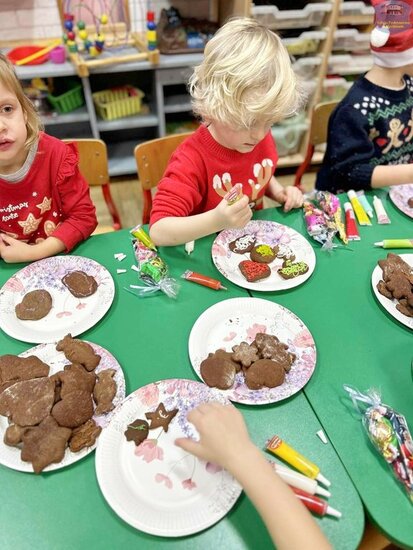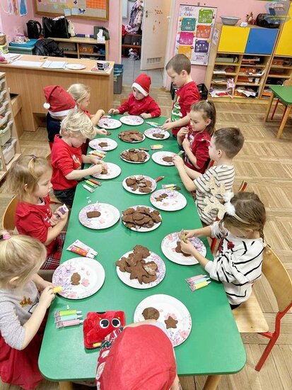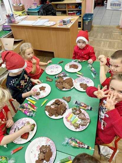 Na zakończenie dzieci z radością dekorowały pierniki upieczone dzień wcześniej podczas warsztatów, a każdy uczestnik otrzymał mały mikołajkowy upominek.