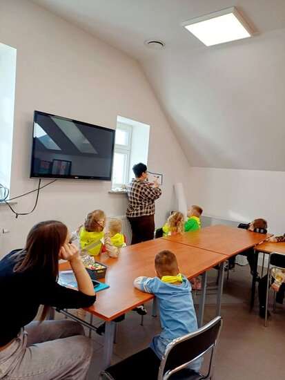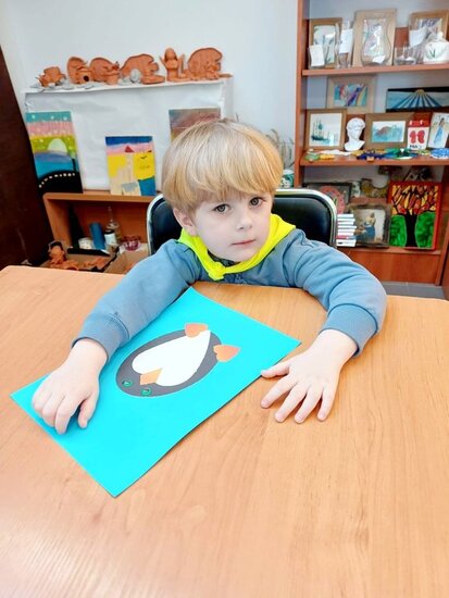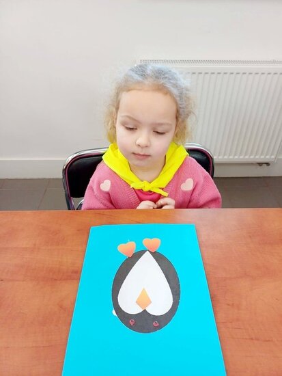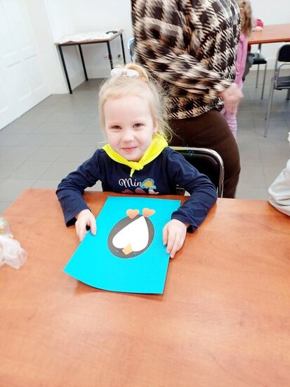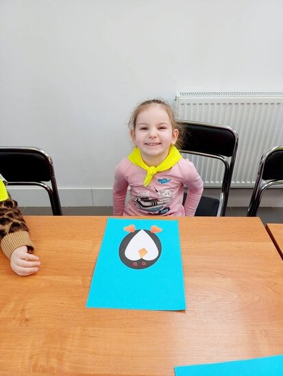 "Pszczółki" z zaciekawieniem wysłuchały opowiadania o mijającej zimie i wymieniły oznaki zbliżającej się wiosny. Następnie wyklejały obrazek pingwinka, który zabrały do przedszkola.