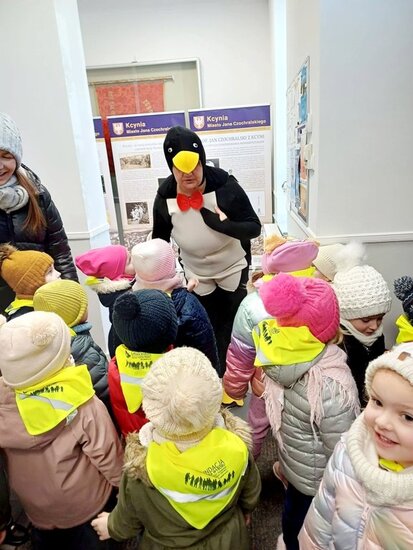 W czwartek, 26 lutego# GCKiB w Kcyni odwiedziły przedszkolaki wraz z opiekunami. Dzieci przywitał pingwinek, któremu z radością "przybijały piątkę".