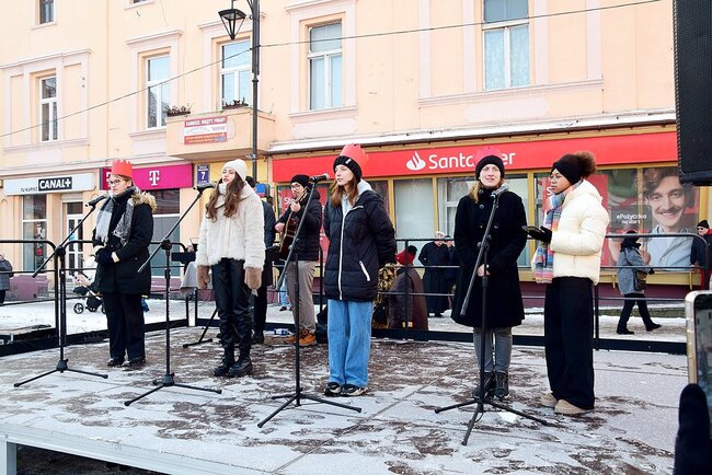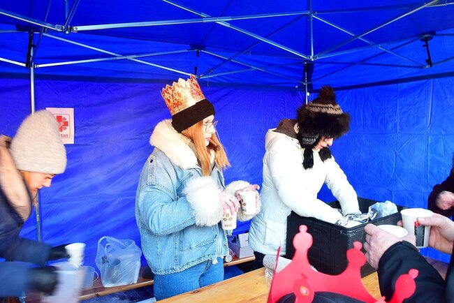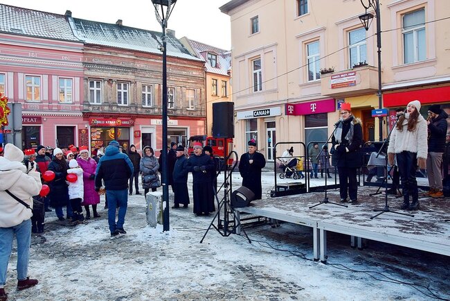 Na Rynku przybyli wysłuchali mini koncertu kolęd. Ciepły barszcz i krokiety zapewniło sołectwo Bielawy.