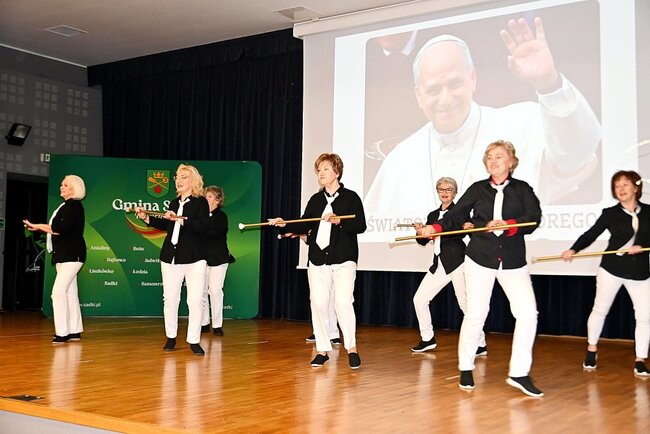 Część artystyczną zapowiedziała dyrektor Gminnego Ośrodka Kultury, Iwona Biniak, zapraszając publiczność na występ zespołu tanecznego AleBabki z Piły. Tancerki zaprezentowały widowiskowy program pełen różnorodnych choreografii i kolorowych kostiumów. Ich dynamiczny i radosny występ spotkał się z entuzjastyczną reakcją widowni, która nagrodziła artystki gromkimi brawami. Energia płynąca ze sceny szybko udzieliła się publiczności, wprowadzając pogodną atmosferę. Na zakończenie przygotowano słodki poczęstunek. Okolicznościowy tort serwowali wójt Michał Piszczek oraz ks. Witold Korowajczyk.