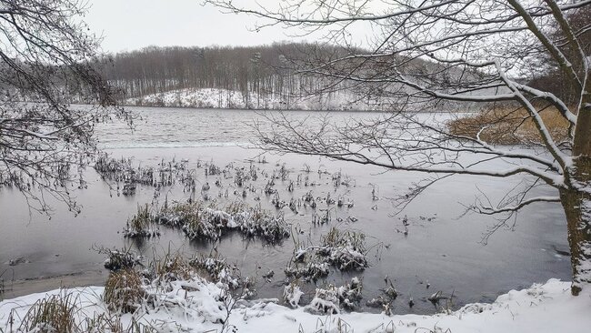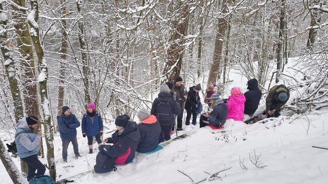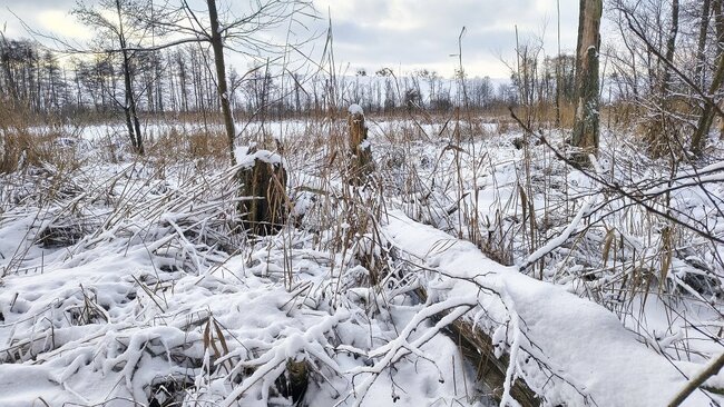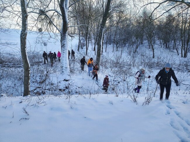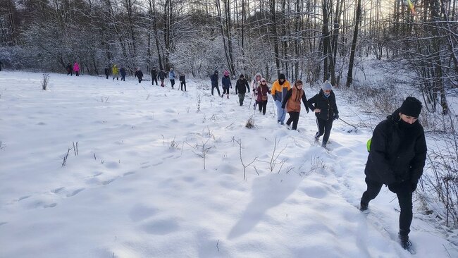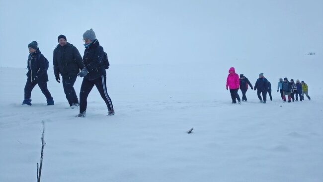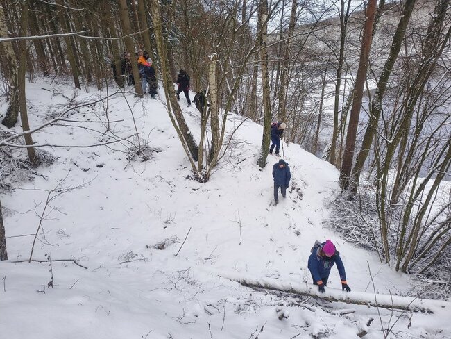 Zimowa aura przykryła te tereny białą kołderką, dodając trasie jeszcze więcej uroku. Liczna, 22-osobowa ekipa w niełatwych warunkach przedzierała się przez tereny wokół jezior, z największym z nich — jeziorem Salno.