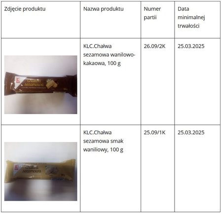 Główny Inspektorat Sanitarny został poinformowany przez dystrybutora o wykryciu obecności bakterii Salmonella spp. w niżej wymienionych partiach chałwy. Spożycie produktu, wiąże się z potencjalnym ryzykiem zatrucia pokarmowego.