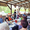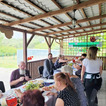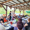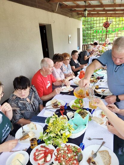 Już po raz drugi seniorzy z naszej wsi zasiedli do stołu,żeby cieszyć się pysznymi daniami,ale przede wszystkim przebywaniem we wspólnym gronie,rozmowami,piękną pogodą. Tym razem w menu znalazły się dania z grilla:szaszłyki,pieczona karkówka,kiełbaski,udka i pierś z kurczaka w towarzystwie kolorowych sałatek i domowego chleba z masłem czosnkowym. Nie zabrakło deseru w postaci szarlotki na ciepło, podanej z lodami i sosem malinowym.