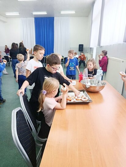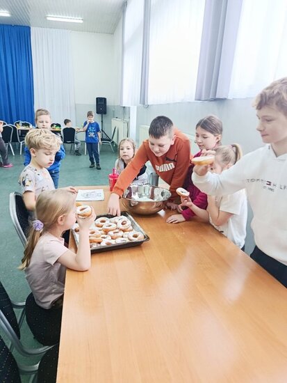 11 lutego w świetlicy wiejskiej w# Dębowie zrobiło się wyjątkowo słodko i radośnie. Wszystko za sprawą tematu przewodniego naszego spotkania – Tłustego Czwartku. Dzieci miały okazję nie tylko poznać tradycje związane z tym dniem, ale również w twórczy i aktywny sposób je świętować.