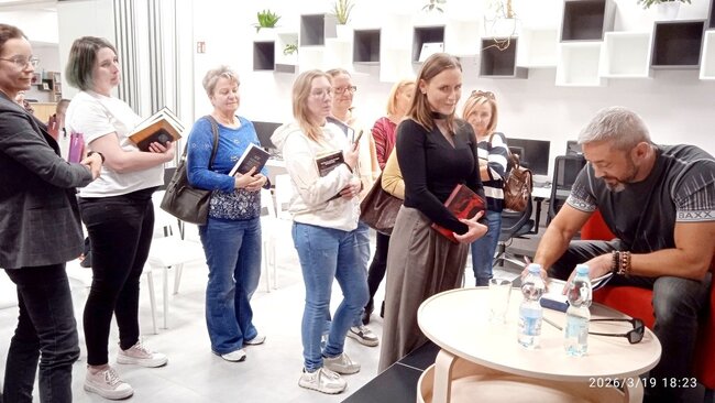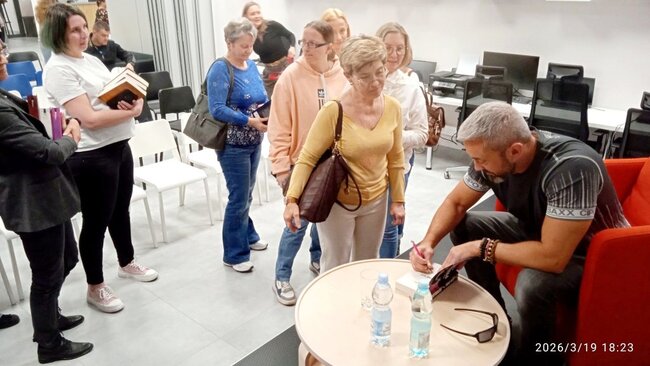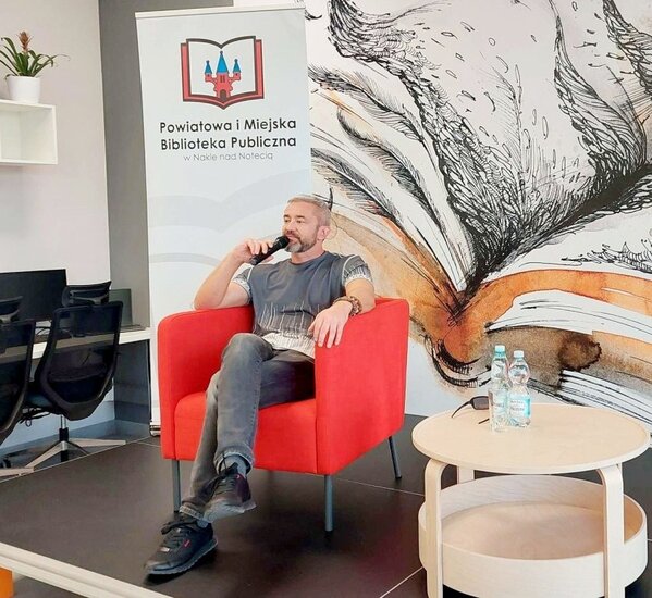 W czwartek 26 marca nakielską bibliotekę# odwiedził zielonogórzanin Przemysław Piotrowski, niegdyś dziennikarz śledczy i sportowy, od lat autor bestsellerowych książek kryminalnych i thrillerów. Najbardziej znany z wielotomowej serii z komisarzem Igorem Brudnym w roli głównej. Pisarz dotychczas wydał 20 książek – pierwszą był „Kod Himlera”, najnowszą „Markiz”.