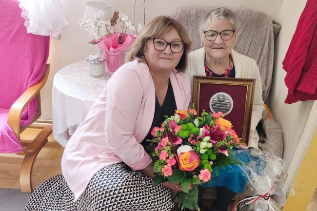 Setne urodziny pani Anny Musiał, która przyszła na świat 21 maja 1925 roku w Dźwiersznie (powiat pilski), to okazja do wspomnień o życiu pełnym pracy, wyzwań i rodzinnego ciepła. W czasie okupacji zmuszana do pracy w niemieckim gospodarstwie, po wojnie wraz z mężem Kazimierzem osiadła w Jadwigowie. Urodziła siedmioro dzieci, a dziś może pochwalić się 14 wnukami, 25 prawnukami i 5 praprawnukami. Choć po przejściu Covid-19 nie wstaje już z łóżka, wciąż zachowuje świetną pamięć i chętnie opowiada rodzinie o dawnych czasach. Z urodzinowymi życzeniami panią Annę odwiedzili także przedstawiciele lokalnych władz samorządowych.