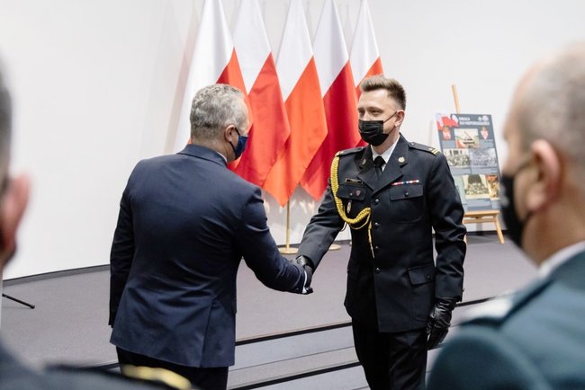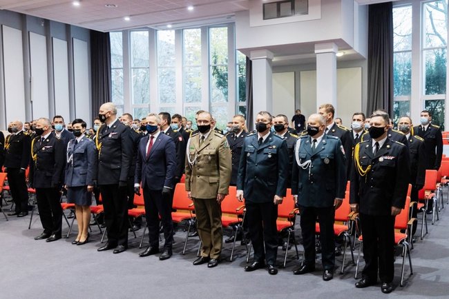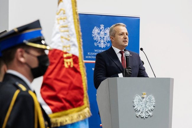 - To, że nasza Ojczyzna jest dzisiaj niepodległa, jest zasługą naszych przodków, którzy o tę niepodległość walczyli. Kieruję słowa uznania także za wsparcie w okresie pandemii. Był to dla nas wszystkich bardzo trudny czas i wielki sprawdzian. Państwa trud i wysiłek w walce z koronawirusem był nieoceniony. Doceniamy oczywiście triażowanie, rozstawianie namiotów i transportowanie próbek do laboratoriów, ale chyba największym przedsięwzięciem, które Państwowa Straż Pożarna wzięła na swoje barki, były magazyny zlokalizowane w Toruniu i transport środków ochrony bezpośredniej do szpitali i szkół – powiedział wojewoda Mikołaj Bogdanowicz.