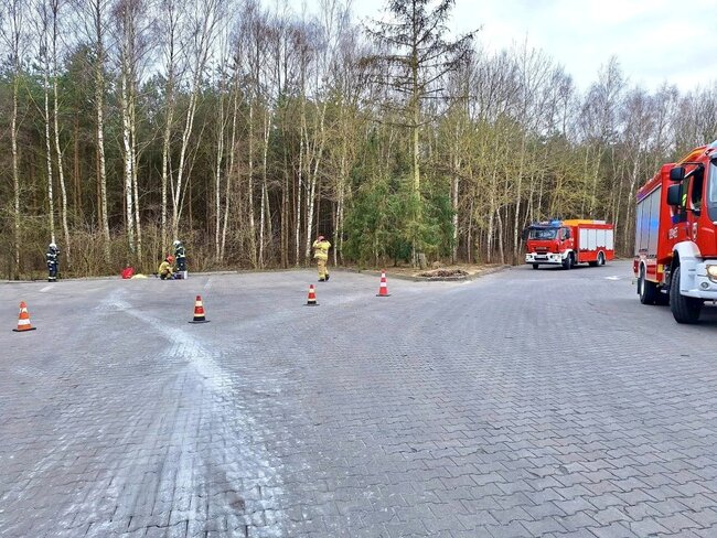 Ponadto podjęto interwencję w związku z rozsypaniem nieznanej substancji chemicznej na parkingu przy jednej ze stacji benzynowych. Na miejscu działania prowadzono wspólnie ze specjalistyczną grupą ratownictwa chemiczno-ekologicznego z Bydgoszczy.