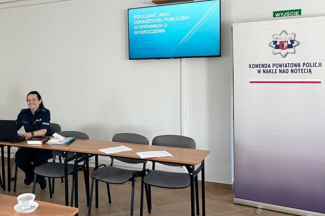 Szkolenie przeprowadziła mł. asp. Ewa Komasińska z Komendy Powiatowej Policji w Nakle nad Notecią. Funkcjonariuszka ta w zeszłorocznym konkursie dla policjantów oskarżycieli-publicznych zwyciężyła w etapie wojewódzkim, a w zawodach na szczeblu ogólnopolskim zajęła wspólnie z asp. Michałem Biegańskim z Komisariatu Policji w Chełmży drugie miejsce w klasyfikacji drużynowej jako reprezentanci województwa Kujawsko-Pomorskiego.