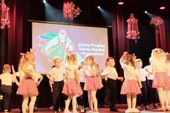 Uczestnicy wzajemnie się dopingowali, nagradzali brawami poszczególne występy, a przy tym dobrze się bawili. Po występach przedszkolaków swoje umiejętności taneczne zaprezentował zespół taneczny Baza Tańca pod kierunkiem pani Karoliny Witkowskiej. Nagrodą za udział w Gminnym Przeglądzie Tańców Polskich i Regionalnych były upominki i dyplomy dla wszystich uczestników.