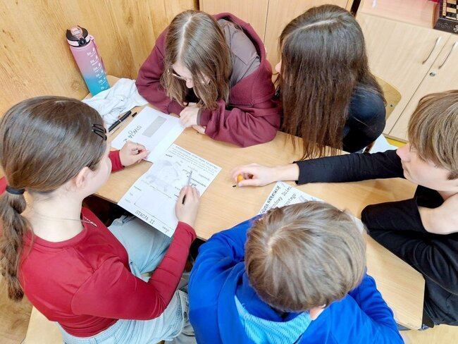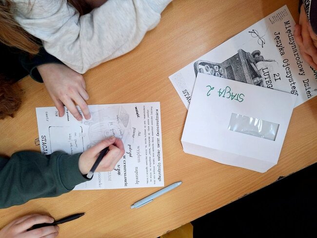 Szóstoklasiści uczestniczyli w grze edukacyjnej typu escape room pod hasłem „Zagraj w polski”. Rozwiązując kolejne zagadki językowe, utrwalali wiadomości z zakresu gramatyki i słownictwa, a jednocześnie ćwiczyli współpracę w grupie.