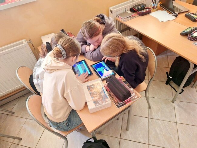 Piątoklasiści pracowali z wykorzystaniem tabletów, rozwiązując interaktywne zadania dotyczące przysłów, związków frazeologicznych oraz części mowy. Zmagali się również z dyktandami, sprawdzając swoją czujność ortograficzną. Nauka poprzez zabawę okazała się świetnym sposobem na utrwalenie wiedzy.