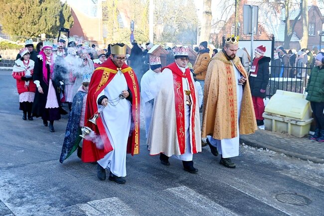 Uroczysty pochód wyruszył spod kościoła farnego około godziny 12.30. Barwny orszak, prowadzony przez Trzech Króli, wypełniły śpiew kolęd, modlitwa oraz radosna atmosfera wspólnego przeżywania święta. Uczestnicy – zarówno dorośli, jak i dzieci – z entuzjazmem włączyli się w to wyjątkowe wydarzenie, które na stałe wpisało się już w kalendarz lokalnych tradycji.