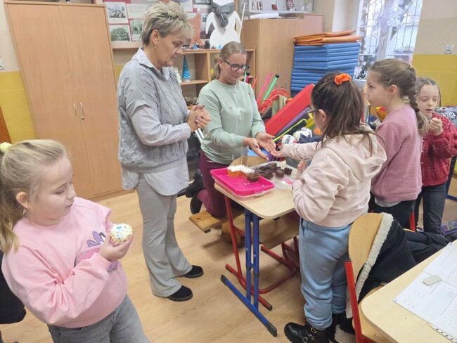 Tradycją u nas są zbiórki sportowe. Inicjatywa ta to wspólny pomysł nauczycielki wychowania fizycznego Joanny Kowalskiej i polonistki Pauliny Kasprzak. 16 stycznia 2026 roku odbył się turniej siatkówki dla klas IV - VIII, nie zabrakło jak zawsze drużyny nauczycielskiej. Gra przebiegała w miłej, choć zaciętej atmosferze. Rywalizacja była ogromna, ale pierwszy raz zwyciężyli nauczyciele. Kolejno II miejsce zajęli najstarsi uczniowie klasa VIII , a tuż za nimi - z niewielką strata punktów uplasowali się - uczniowie klasy V. Wpisowe zasiliło orkiestrową puszkę. 23 stycznia br. odbył się turniej hokeja dla klas I - III. Podobnie jak klasy starsze składki wzbogaciły budżet orkiestrowy. Dzieci bawiły się świetnie, nauczone zdrowej, sportowej postawy , nikt się nie obrażał, a uśmiechy nie znikały z buzi. Wiadomo, że zwycięzca może być tylko jeden. Laur pierwszeństwa mieli uczniowie klasy II (pół klasy) , II miejsce zajęli uczniowie klasy III. Trzecie miejsce na podium przypadło zaś drugiej połowie klasy II. Równocześnie odbywała się akcja Samorządu Uczniowskiego "Słodki piątek" . Przepyszne kolorowe babeczki, wielobarwne galaretki, a nawet gofry pachnące latem i świeżymi owocami z bitą śmietana - to produkty, które serwowano wszystkim w szkole. Ich sprzedaż także zapełniała puszkę WOŚP. W tym miejscu, jako opiekun SU pragnę podziękować wszystkim zaangażowanym. Trzeba podkreślić, że zawsze możemy liczyć na pomoc rodziców, którzy wykazali się swoimi zdolnościami cukierniczymi . Nie brakuje wśród naszej społeczności zrozumienia i zgrania. Akcje raz zorganizowali nauczyciele, a kolejny poczęstunek to już dzieło wspólne- grona pedagogicznego, pracowników szkoły i przede wszystkim rodziców.