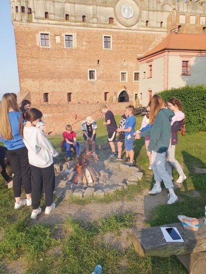Po zajęciach wycieczkowicze mogli wypocząć przy ognisku i pieczeniu kiełbasek, a nocleg w komnatach zamkowych pozostanie im na długo w pamięci.
