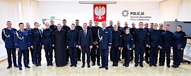 Do służby przyjęliśmy 23 nowych policjantów, którzy trafią do komend miejskich i powiatowych naszego województwa: dziesięciu do Bydgoszczy, pięciu do Oddziału Prewencji Policji w Bydgoszczy, po dwóch do: Torunia, Włocławka, Nakła, po jednym do: Radziejowa i pionu kryminalnego KWP w Bydgoszczy.