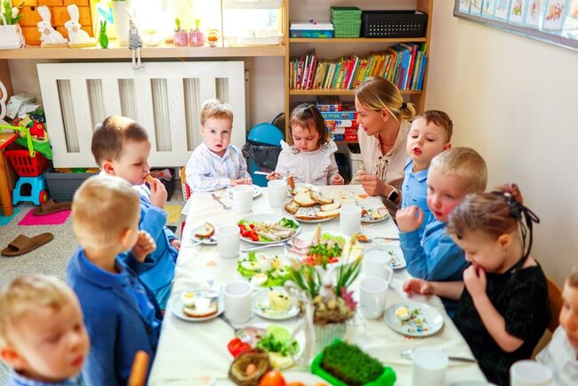 W każdej grupie odbyło się uroczyste śniadanie, podczas którego przedszkolaki wspólnie zasiadły do pięknie udekorowanych stołów, poznając i kultywując tradycje świąteczne.