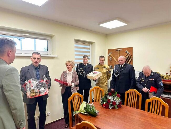 Spotkanie miało szczególnie podniosły charakter, ponieważ było okazją do złożenia serdecznych podziękowań Komendantowi Sławomirowi Murawskiemu z okazji zakończenia wieloletniej służby w strukturach Państwowej Straży Pożarnej.