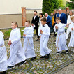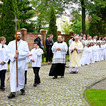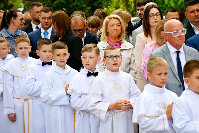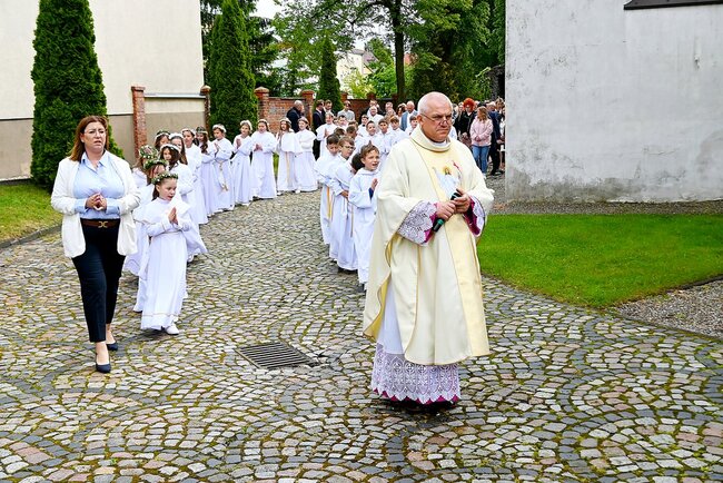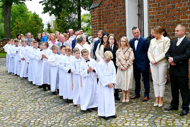 Przed rozpoczęciem mszy świętej, dzieci gromadziły się na placu przed świątynią, gdzie rodzice udzielali im błogosławieństwa. Następnie wszyscy udali się do kościoła, by wspólnie uczestniczyć w komunijnym nabożeństwie. Sakramentu Pierwszej Komunii Świętej udzielił dzieciom proboszcz ks. kanonik Tadeusz Lesiński.