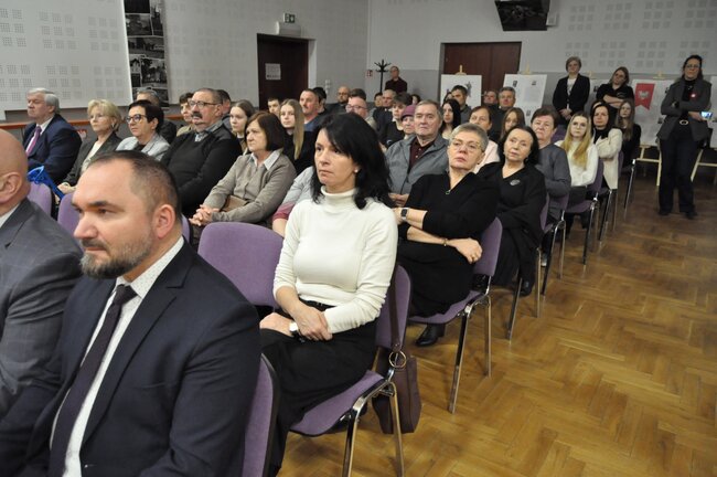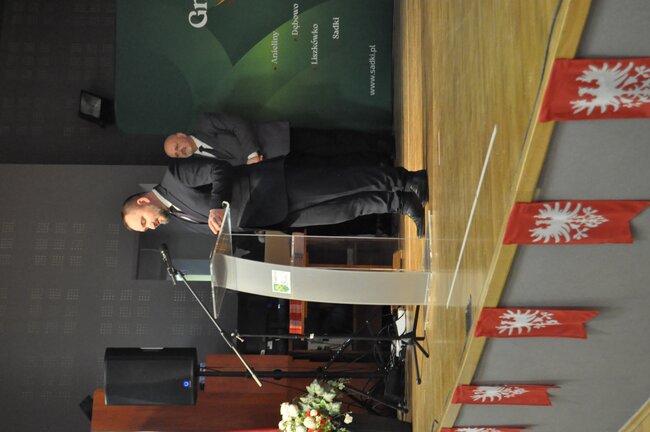 Zebranych gości powitała dyrektor Gminnego Ośrodka Kultury w Sadkach Iwona Biniak. Okolicznościowe przemówienia wygłosili wójt Gminy Sadki Michał Piszczek oraz przewodniczący Rady Miejskiej Andrzej Niedbała.