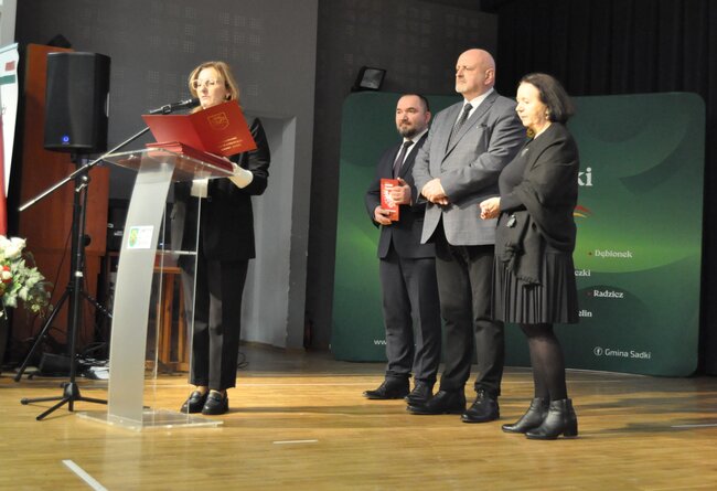 Wyjątkowym momentem wydarzenia było wręczenie aktów nadania tytułu Honorowego Obywatela Gminy Sadki. O przyznaniu tego zaszczytnego wyróżnienia zdecydowała Rada Gminy Sadki w drodze uchwały podjętej w listopadzie ubiegłego roku. Akty nadania odebrali członkowie rodzin uhonorowanych.