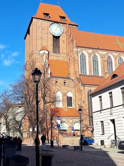 Po przyjeździe do Torunia udaliśmy się na Stare Miasto, które jest jednym z najpiękniejszych i najlepiej zachowanych zespołów średniowiecznej architektury w Polsce. Pani Beata Taczyńska - Milczarek zadbała o grę dydaktyczną pt. "Odkrywcy Starówki. Gotyk na dotyk" Spacer rozpoczęliśmy od Rynku Staromiejskiego, gdzie mogliśmy podziwiać piękny Ratusz Staromiejski oraz liczne zabytkowe kamienice. Pani przewodnik opowiadał nam o historii miasta, które zostało założone przez Krzyżaków w XIII wieku i szybko stało się ważnym ośrodkiem handlowym. W trakcie spaceru zobaczyliśmy również pomnik Mikołaja Kopernika oraz Katedrę św. Janów, w której został ochrzczony przyszły astronom.