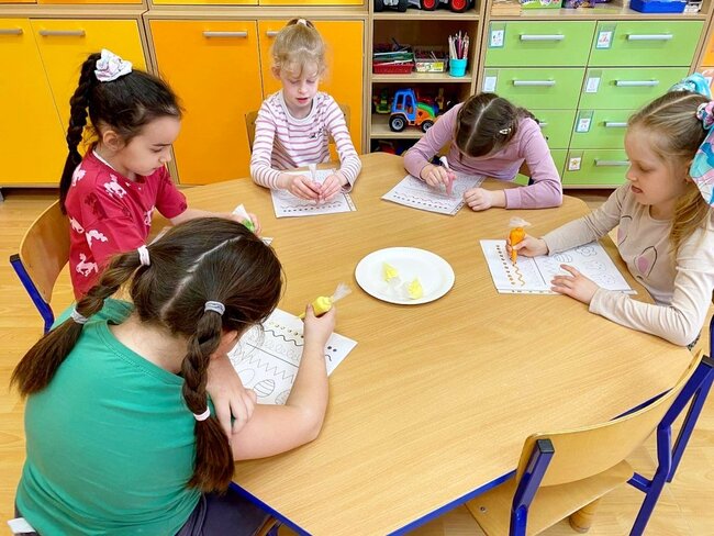 17 marca br. dzieci z grupy przedszkolnej# Biedronki i Motylki ze Szkoły Podstawowej w Dziewierzewie wzięły udział w kreatywnych warsztatach dekorowania ciasteczek lukrem królewskim.
