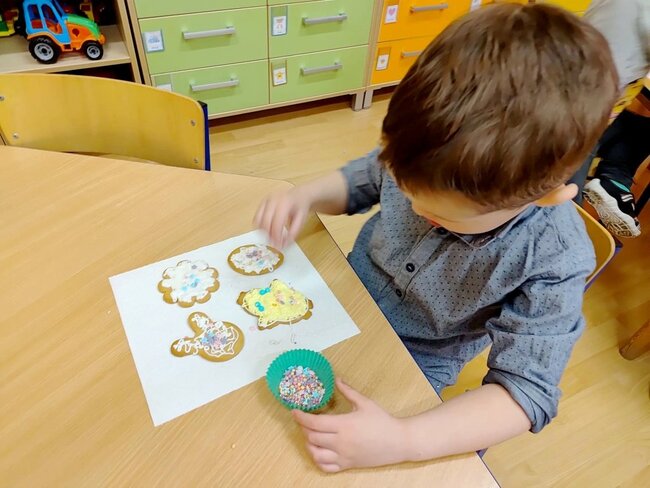 Świąteczne dekorowanie ciasteczek okazało się wspaniałym przedświątecznym przedsięwzięciem i spotkało się z dużym zainteresowaniem wśród przedszkolaków.