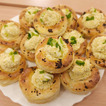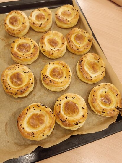 - gniazdka z ciasta francuskiego z pastą jajeczną