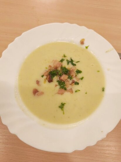 - krem ziemniaczany z jabłkiem i wędzonym boczkiem