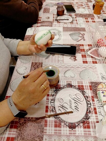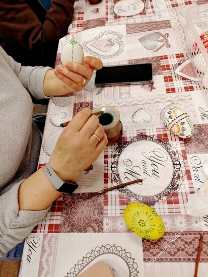 Podczas spotkania uczestnicy mieli okazję poznać tradycyjną metodę zdobienia jajek, polegającą na nanoszeniu wzorów gorącym woskiem, a następnie barwieniu ich w kolorowych farbach. Każdy mógł spróbować swoich sił i stworzyć własną, niepowtarzalną pisankę.